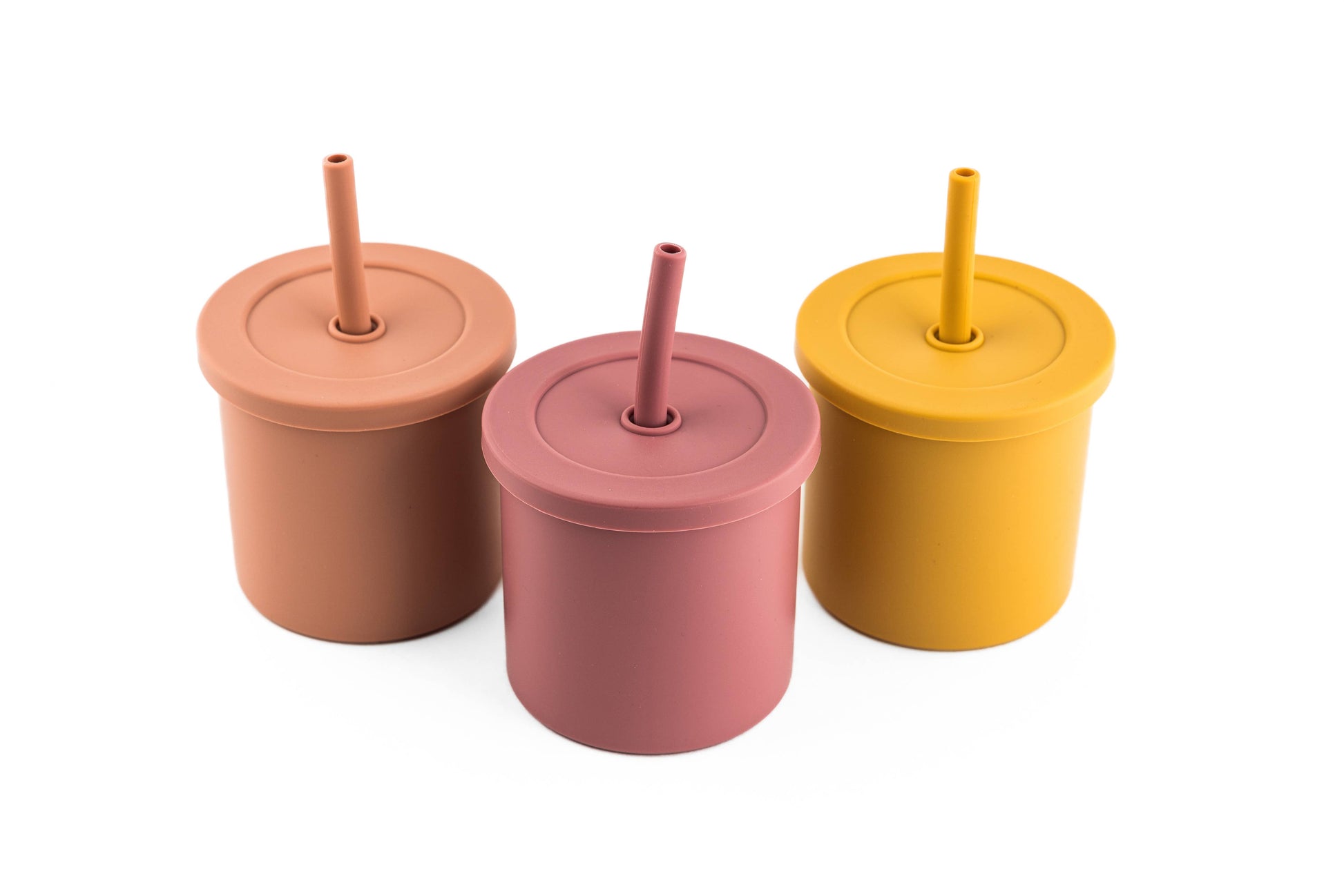 2 in 1 Straw Cup and Snack Container - Warm Tones