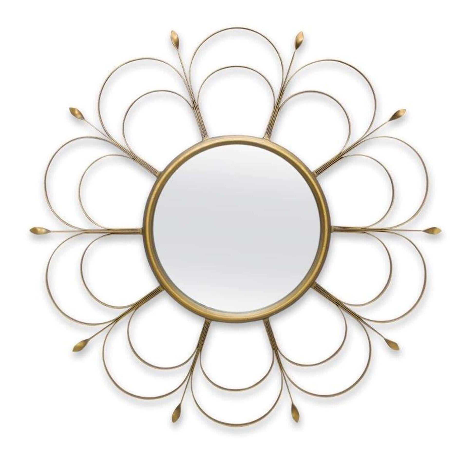 Art Deco Round Flower Wall Mirror in Gold Iron