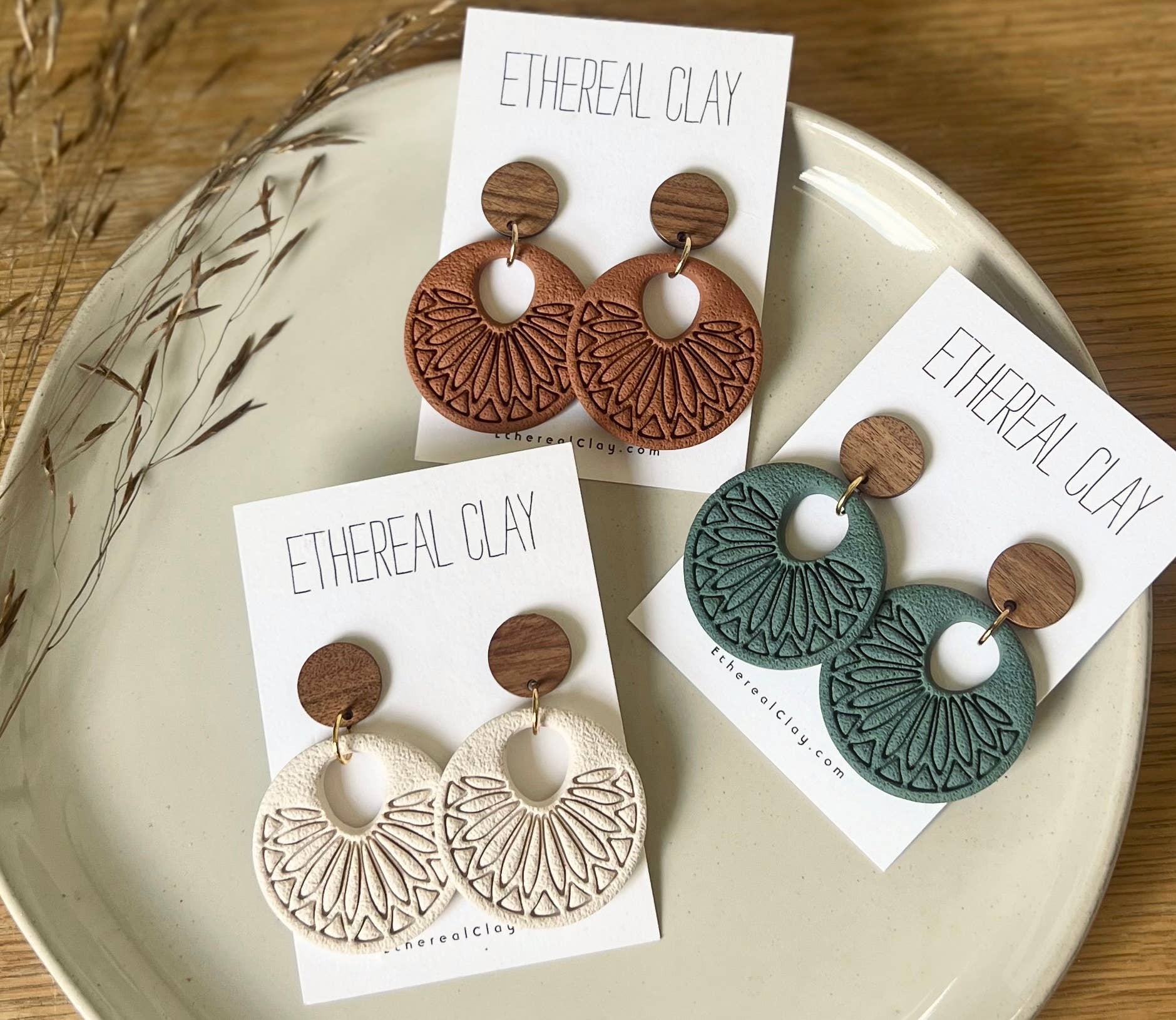 Wooden Stud Top Earrings, Embossed Cut Out Designs