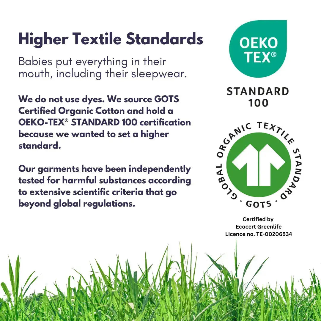 Feel a new sense of calm, knowing your baby is ok each time you check on them. Parenting is stressful enough, and our non-toxic organic sleepwear is a game changer for parental anxiety levels.