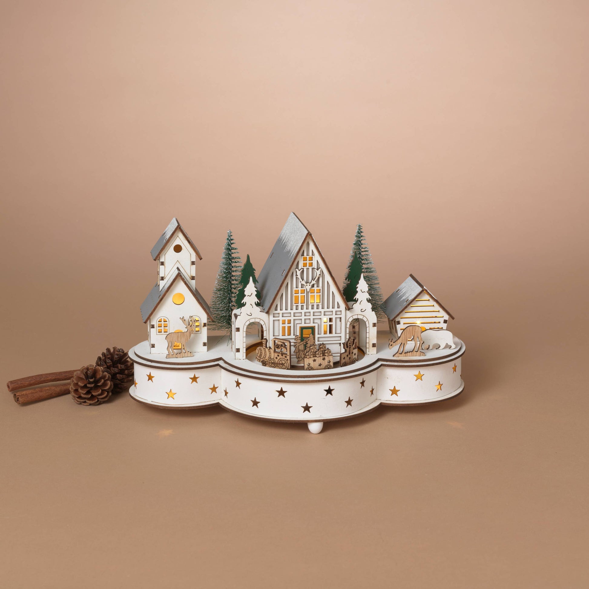 Christmas 11.81"L B/O Lighted & Musical Laser Cut Wood Village w/ Moving Train
