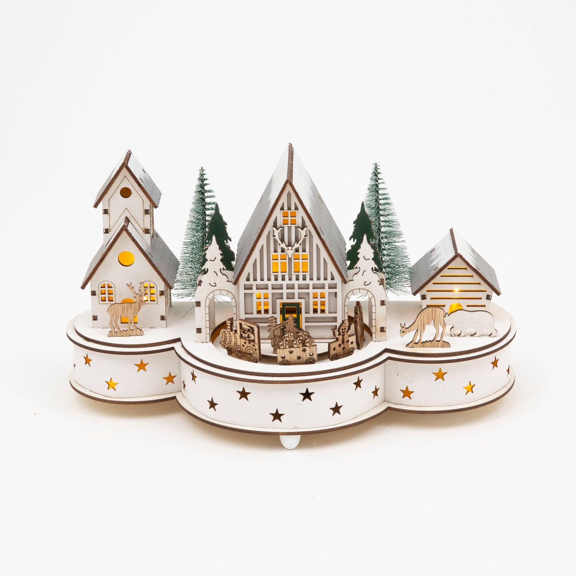 Christmas 11.81"L B/O Lighted & Musical Laser Cut Wood Villa