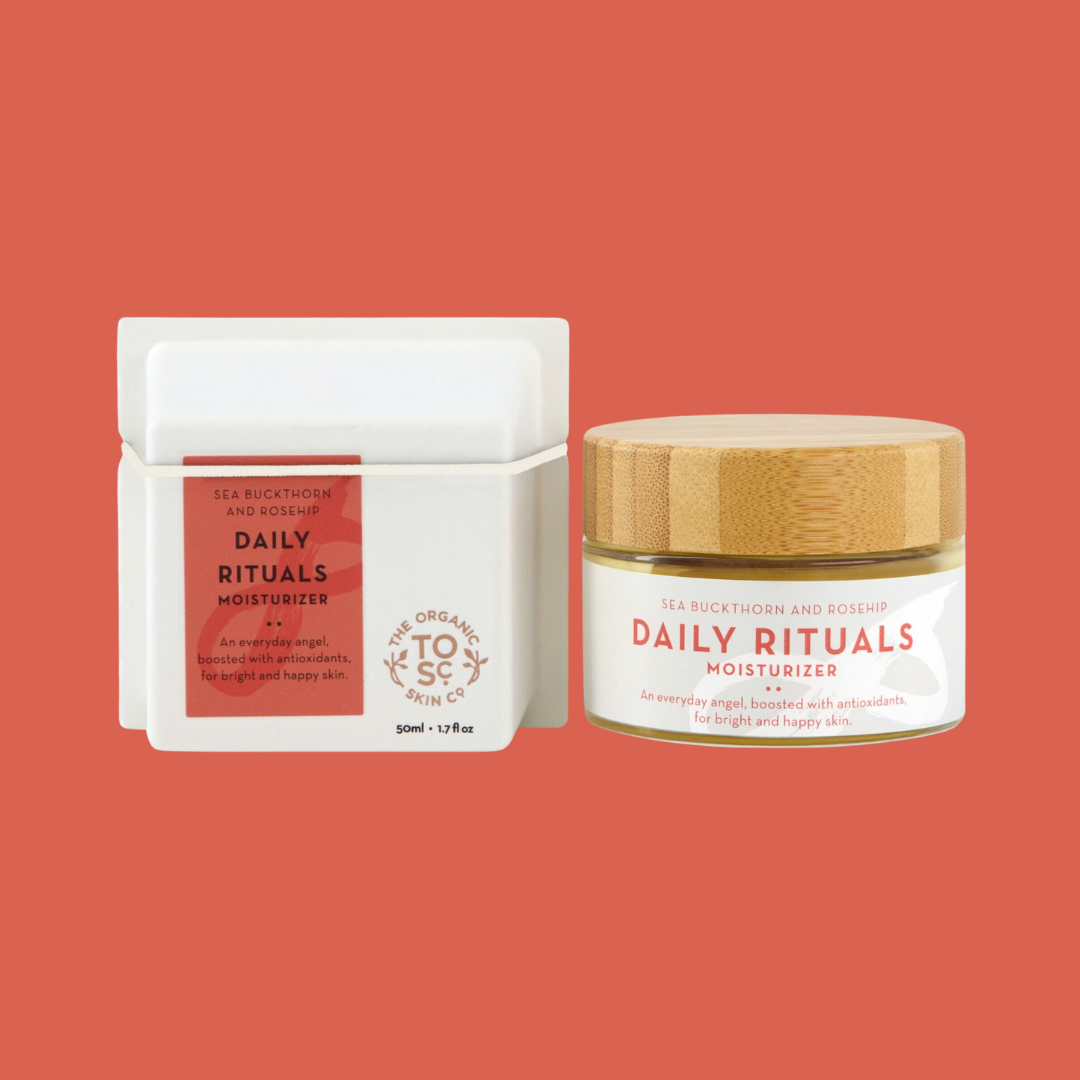 Our Daily Ritual - PH Balance Facial Moisturizer is enriched with a plethora of organic elements, including sea buckthorn, pomegranate, and rosemary CO2 extracts, alongside soothing calendula and licorice.