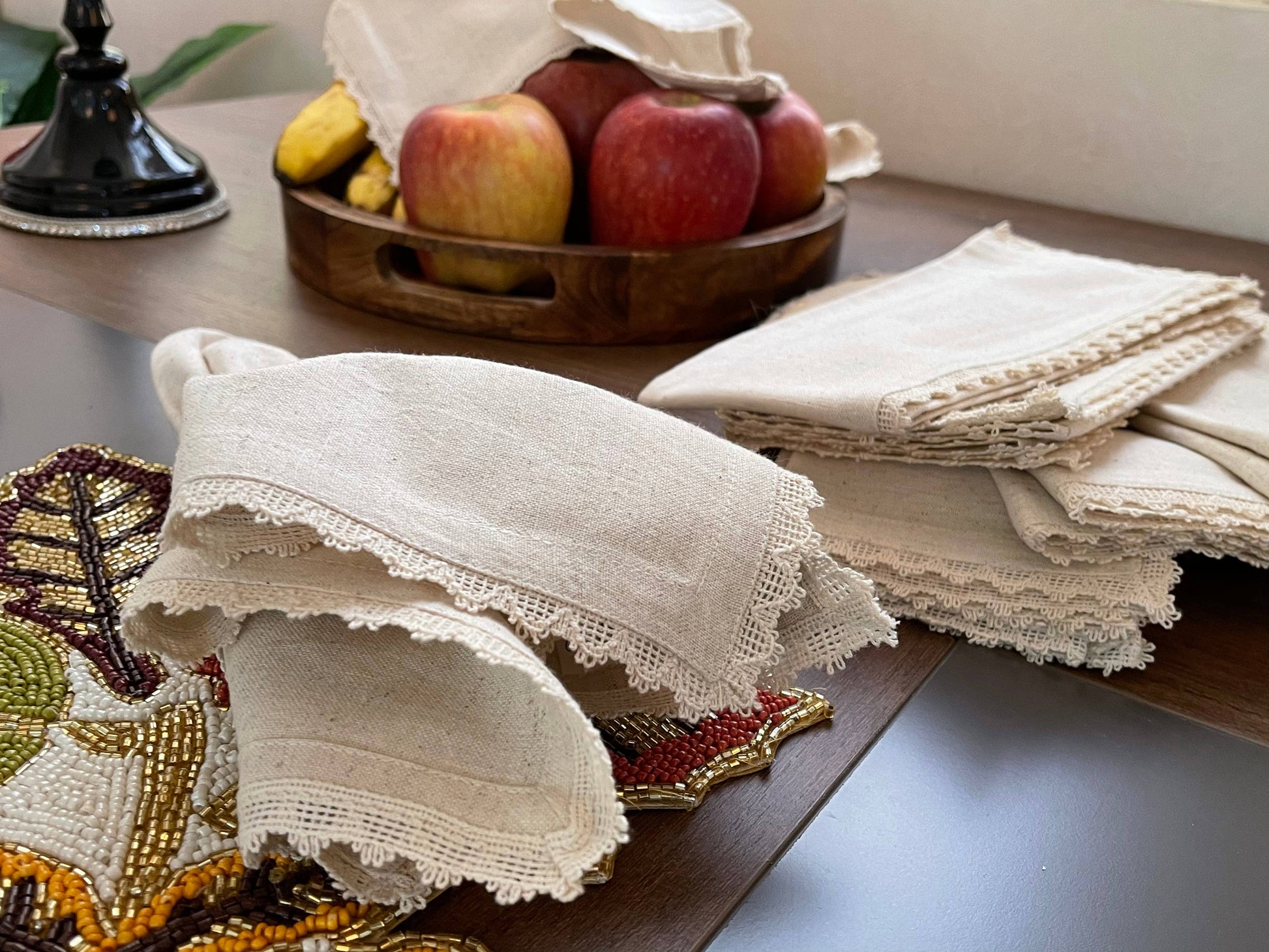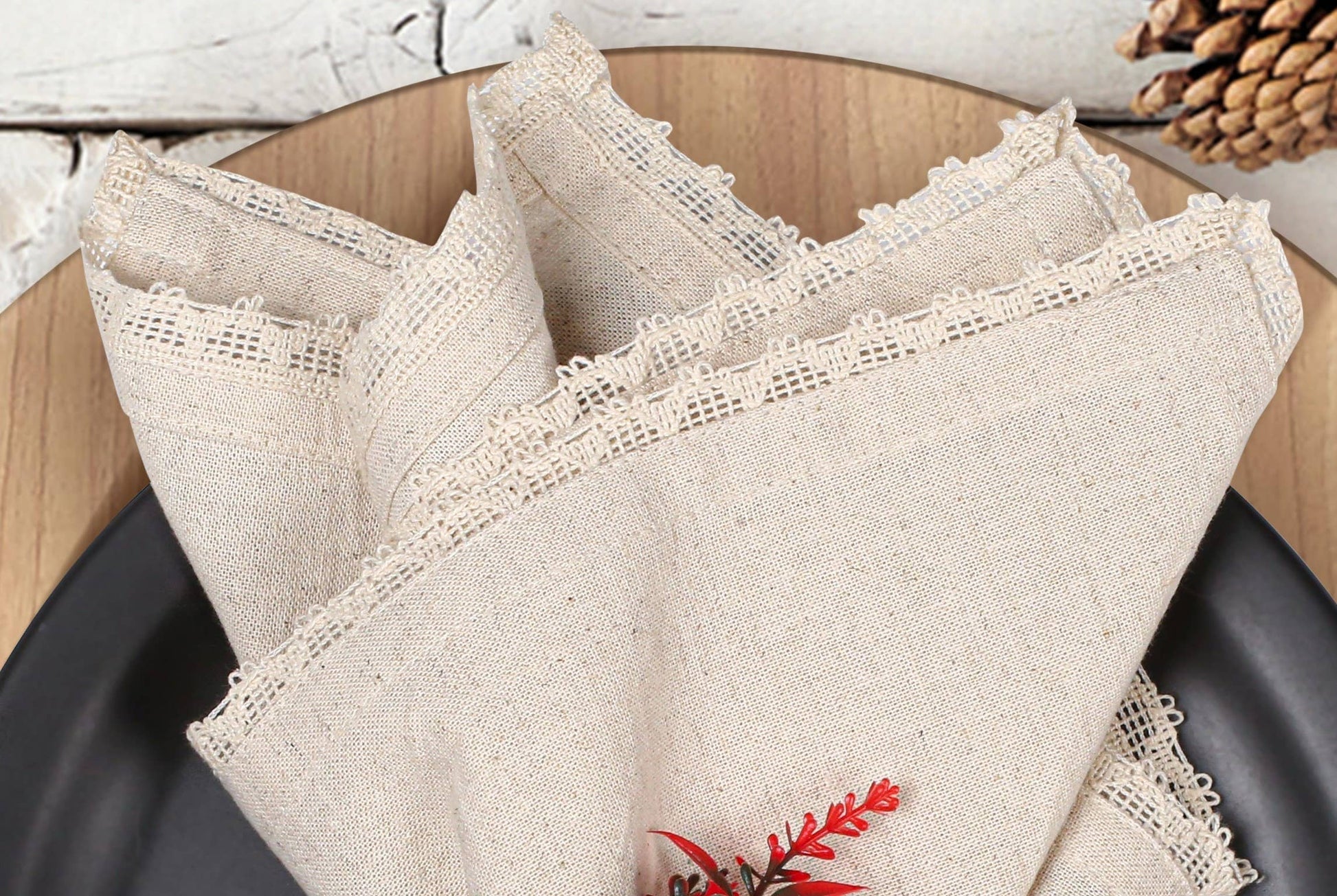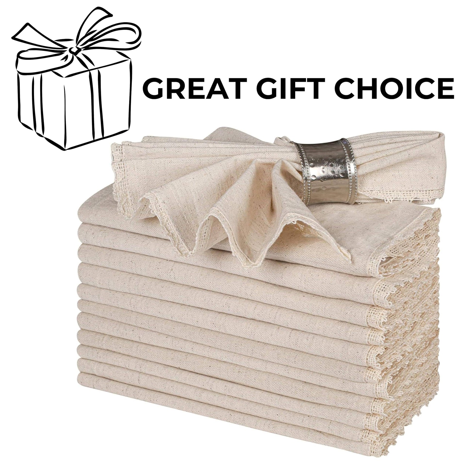 Flax Linen Cotton Cloth Dinner Napkin 18x18 With Lace 18x18" Linen Wedding Napkins, Set Of 12