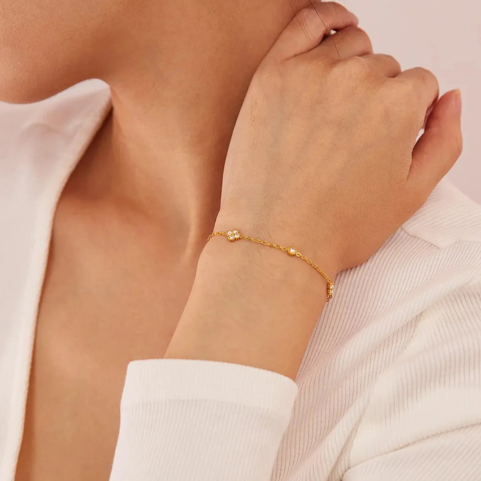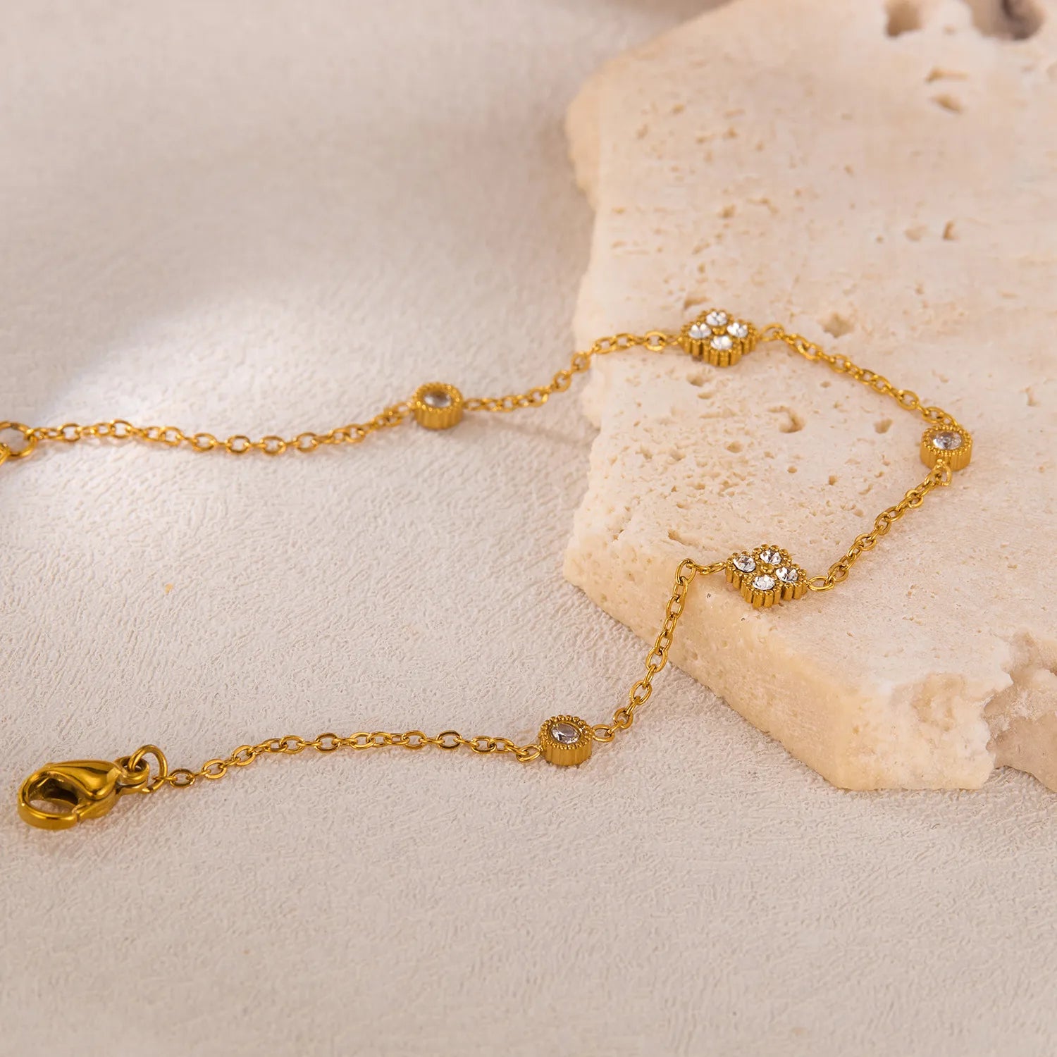 Meet your new daily dose of luck! The Fortuna Chain features alternating clover and circle charms that whisper "fortune is coming your way." Crafted from 18K gold-plated titanium steel with a single zircon sparkle—because you deserve to shine.