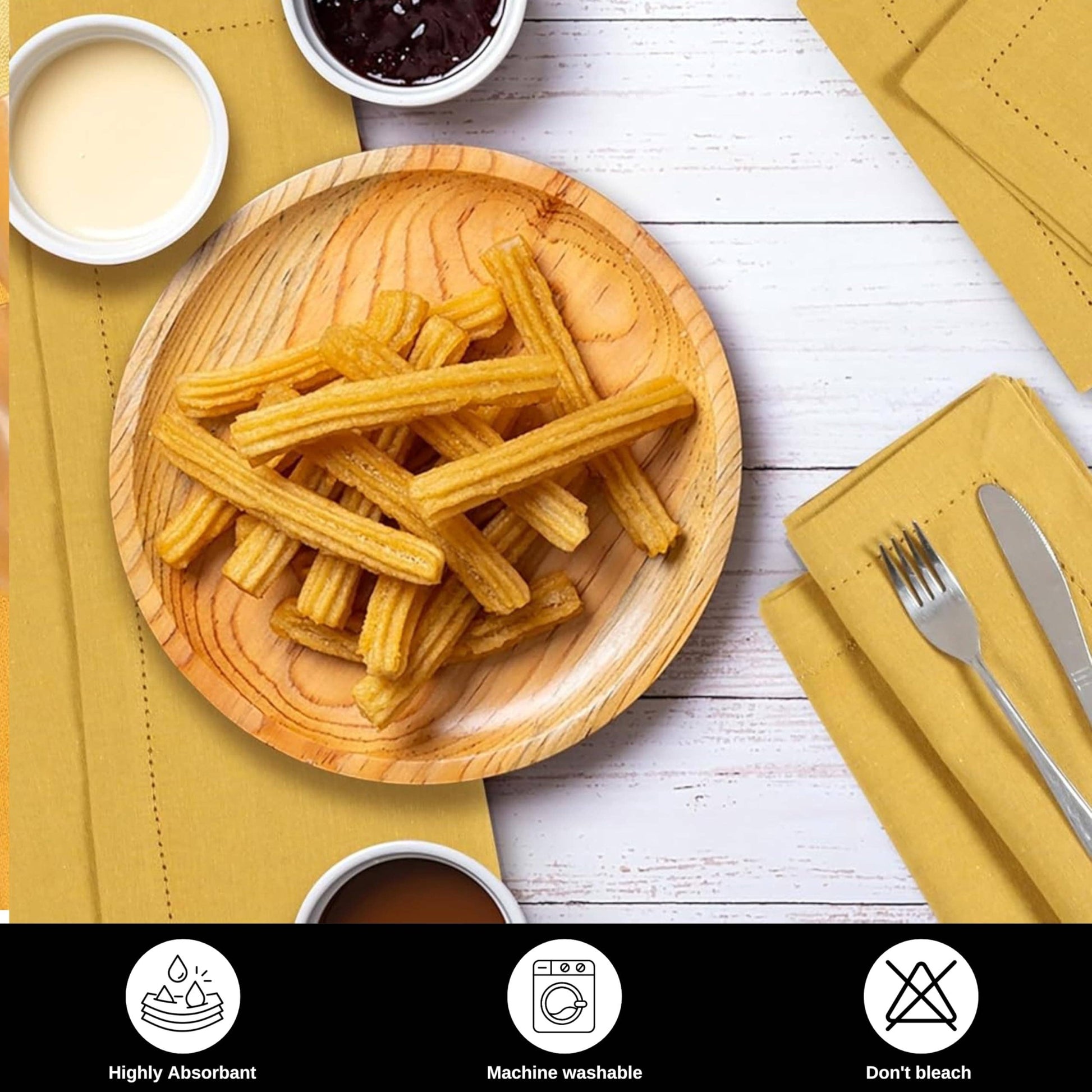 Elevate your dining experience with these luxurious Honey Yellow Cotton Cloth Napkins. Measuring 18x18 inches, this set of 12 napkins features metered corners and hemstitch detailing, adding a refined touch to your table. Perfect for Thanksgiving, Christmas, or any special occasion, these reusable napkins are both eco-friendly and stylish. Their high-quality cotton fabric ensures durability and a soft feel, making them an ideal addition to your home for elegant gatherings.
