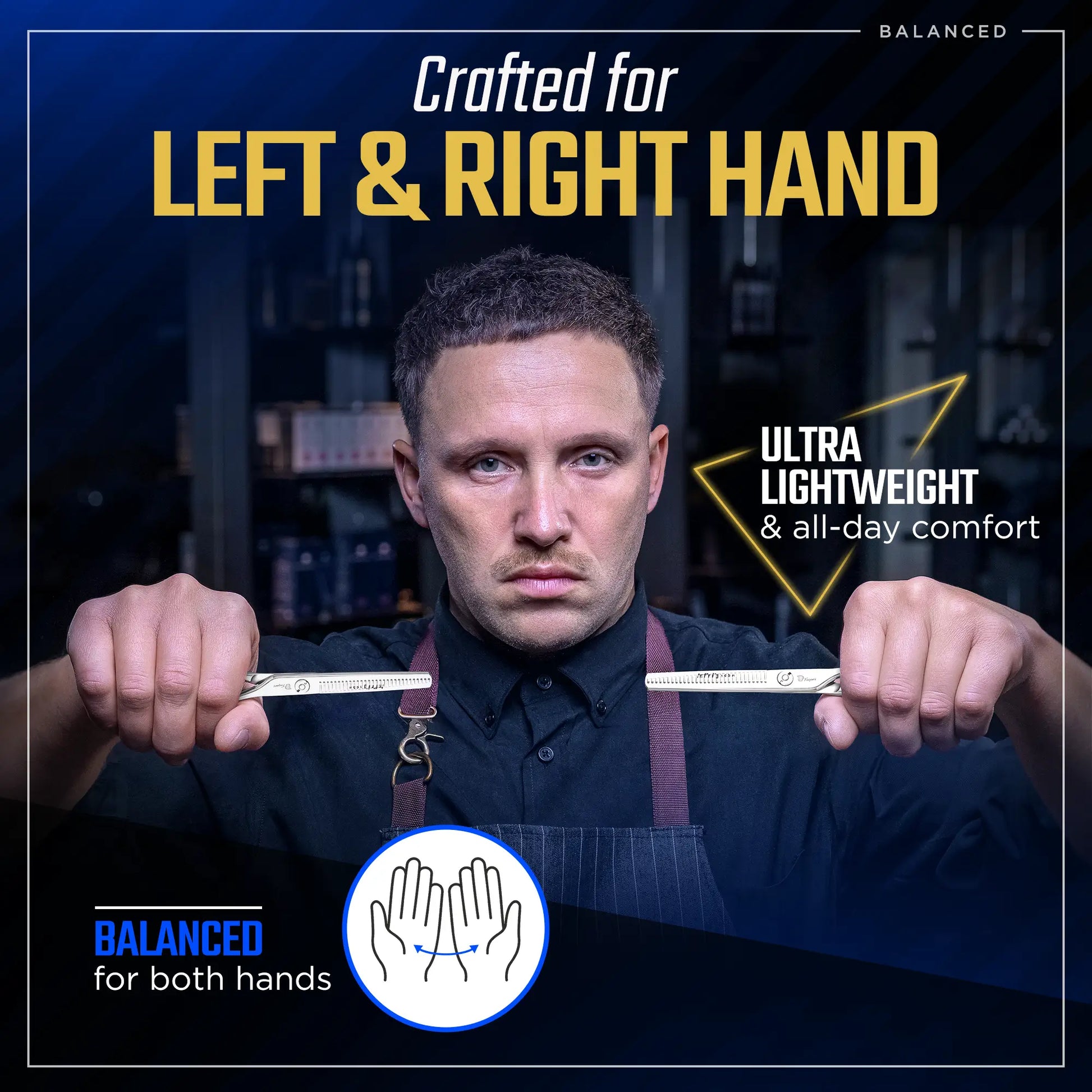 • LEFT & RIGHT HAND USE - Fagaci Infinity hair thinning shears for women boast a meticulously balanced design, comfortably fitting both left and right hands. Perfect for versatile applications.