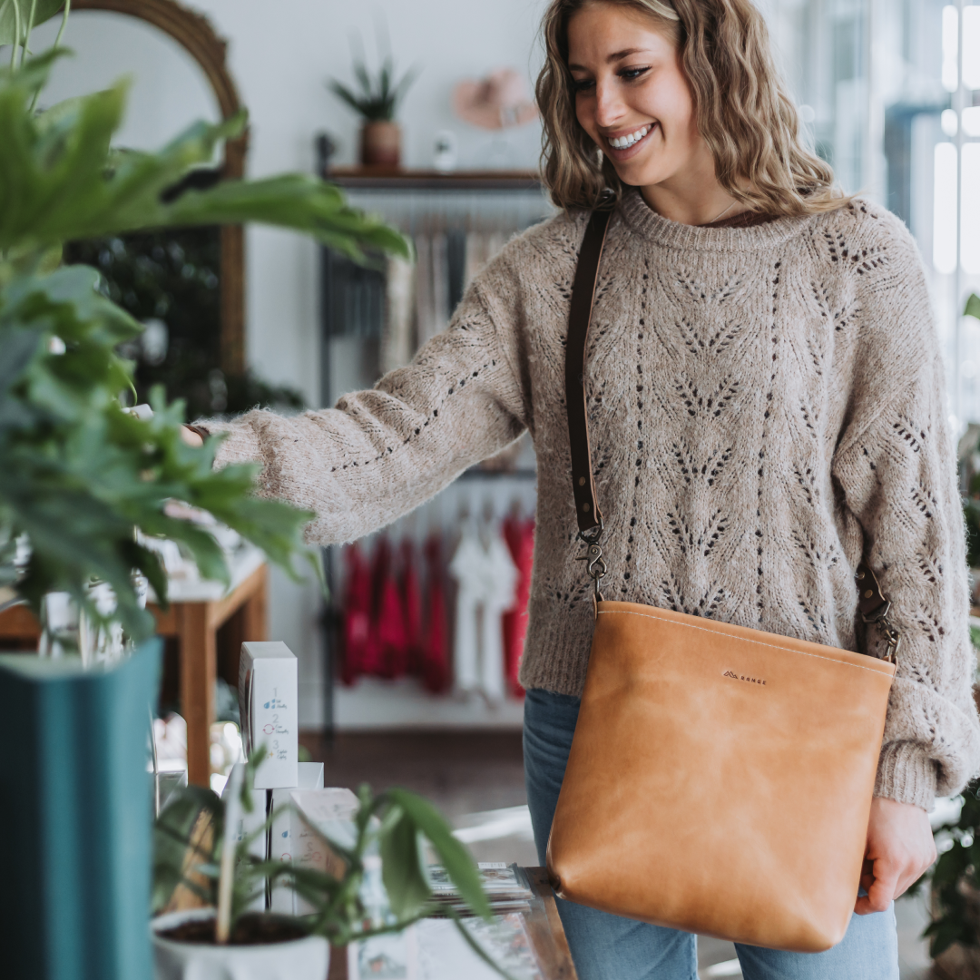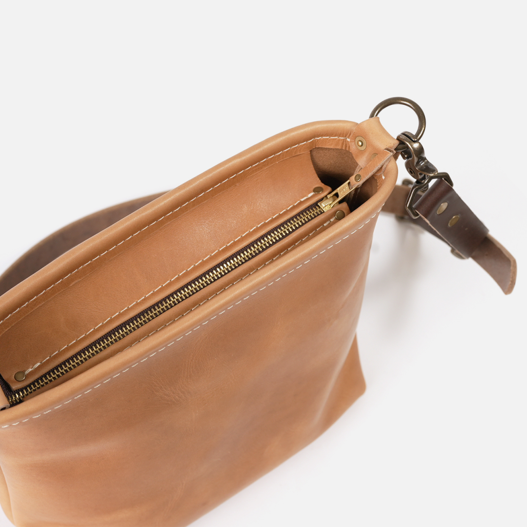The ultra versatile Pocketless Kennedy Crossbody is going to be your new go-to favorite. The Kennedy comes with a fully adjustable cross body strap as well as a short shoulder strap, giving you the ability to choose how to carry. Made of full grain, Horween leather, this bag features a spacious interior, zippered closure and solid brass hardware. Thoughtfully designed and intentionally crafted, the Kennedy fits all styles with a rustic, yet refined look and feel.