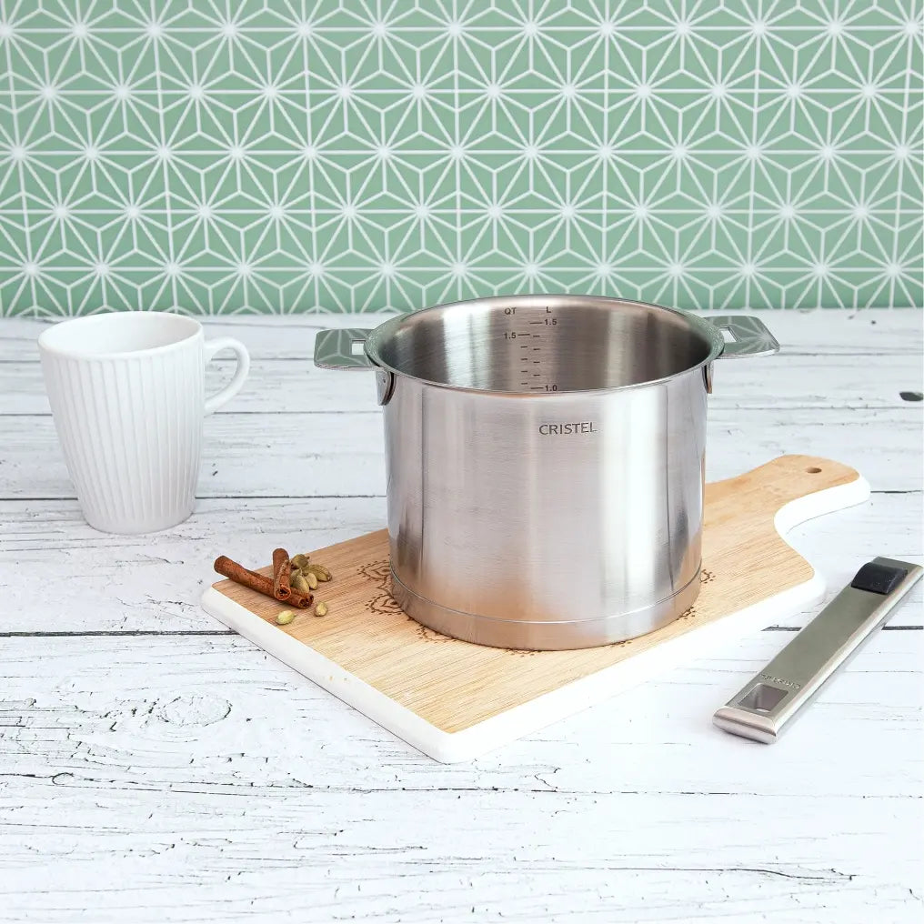 The Strate®milkpot, made of stainless steel 18/10, preserves the taste of your food and is easy to clean after cooking.
