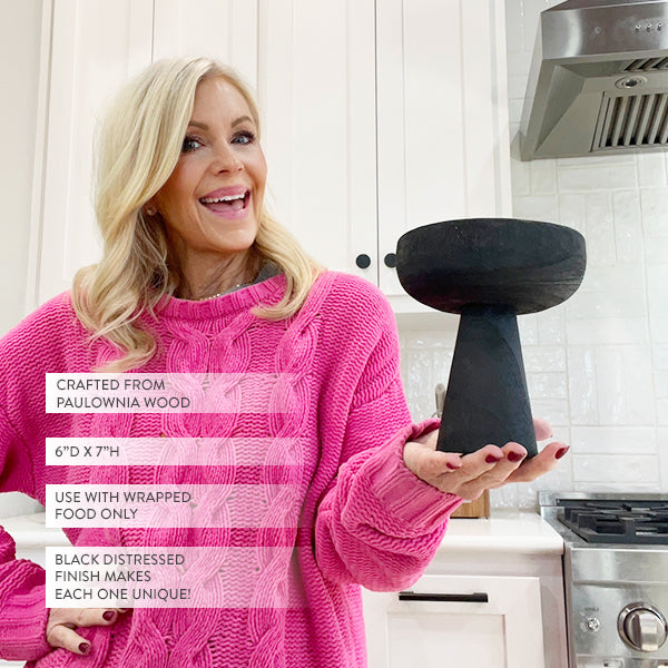 We love Paulownia wood! Bring a touch of modern decor elegance to your home with this striking black elevated wood bowl. Combining minimalist design with timeless craftsmanship, this piece is as functional as it is stylish. Whether you're hosting a dinner party or curating decor, this bowl is sure to turn heads.