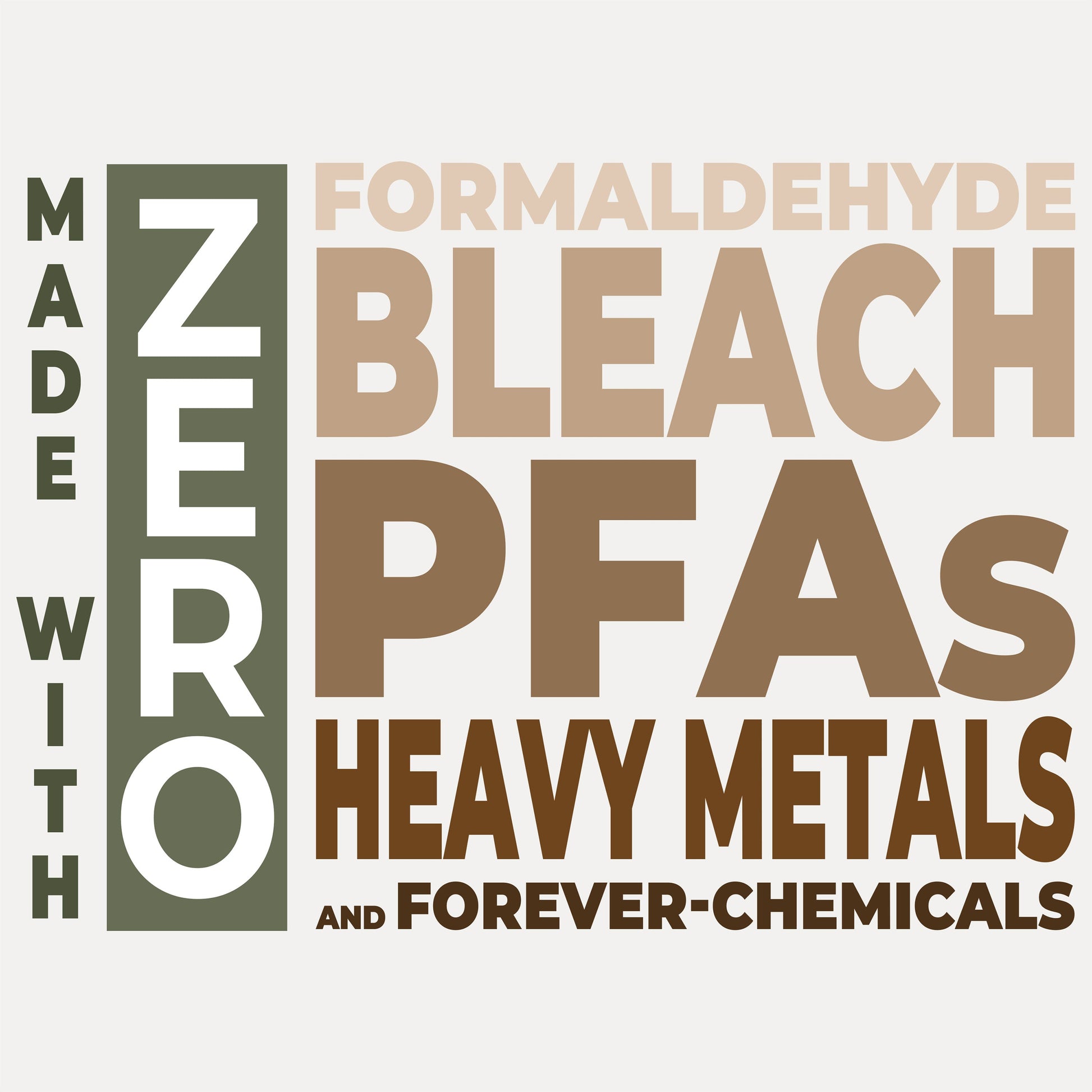 Verified FREE of Harmful Chemicals | Ours is certified PFAS-free (No forever chemicals), certified formaldehyde-free, and certified heavy metal-free.